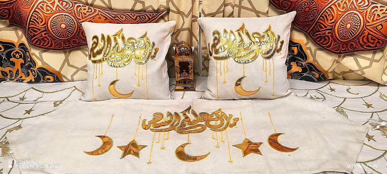 مفرش رانر رمضاني تطريز 2 مخدة